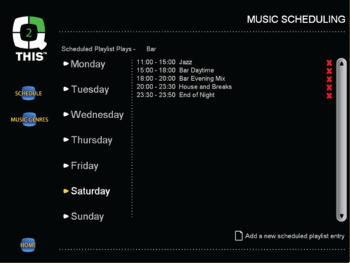 Do all this for up to four independent music zones, each with their own schedule. Q-THIS™ will automatically pick the tracks based on your preferences. You can find, add or remove individual tracks from the schedule and of course you can create your own exact playlists too.